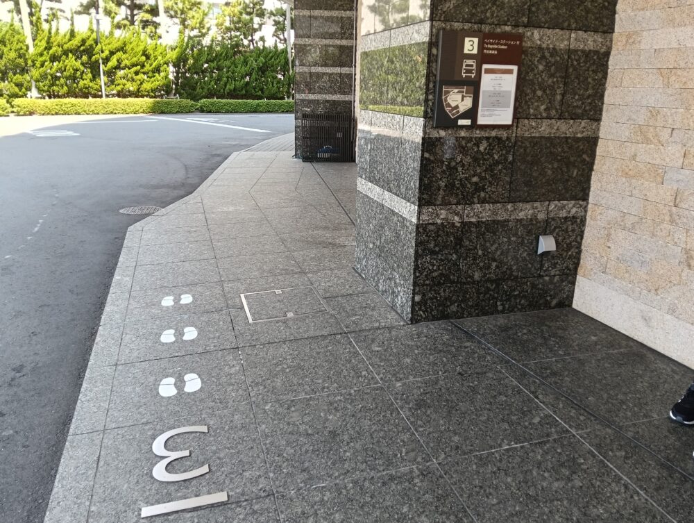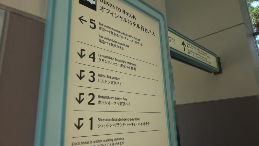 バスのプラットホームには各ホテル行のバス停が設けられており1番バス停から5番バス停まであり「東京ベイ舞浜ホテル」からの降車バス停は5番バス停です。