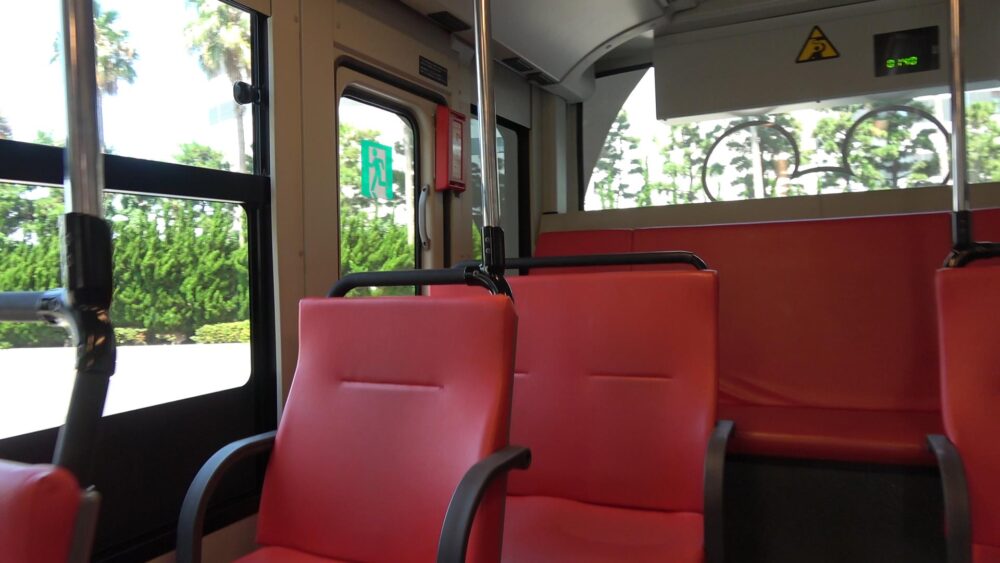 シート色は赤色で統一されており旧タイプのディズニーリゾートクルーザーと同じです。