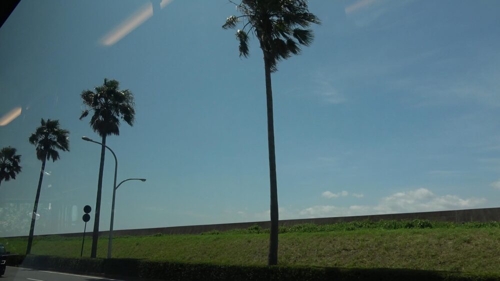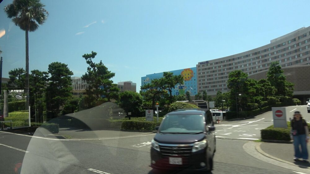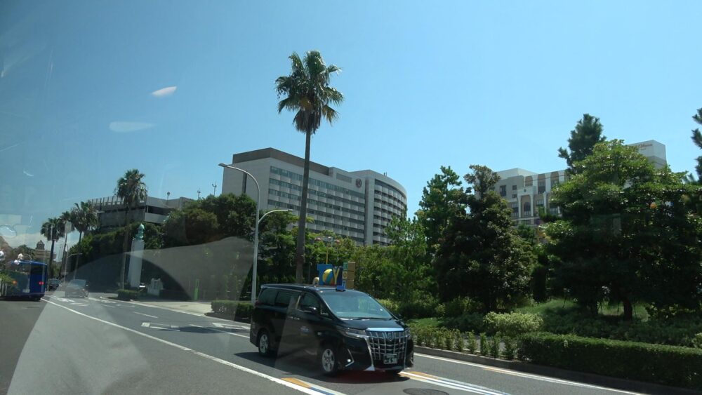 「東京ベイ舞浜ホテル」を出発すると左折し、バスの右手にはヤシの木が生い茂っており南国的な雰囲気