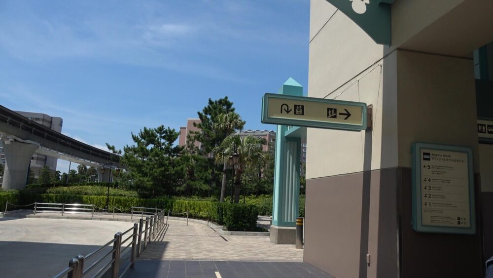 「トイ・ストーリーホテル」の立体駐車場前の横断歩道を過ぎると左折し「ベイサイドステーション」のプラットホームへと入って行きます。