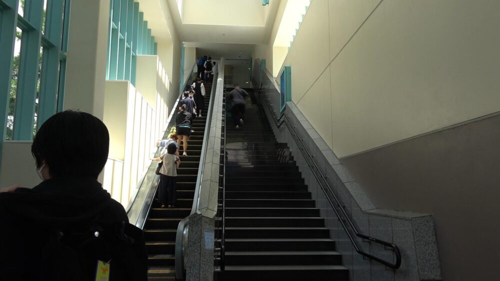 エスカレーター(階段)を上りきると右手には改札口