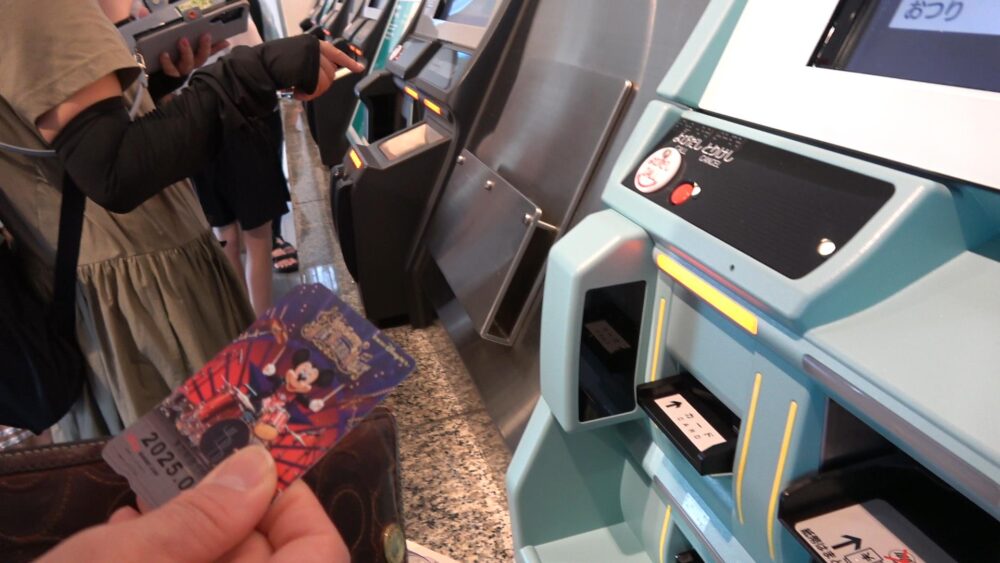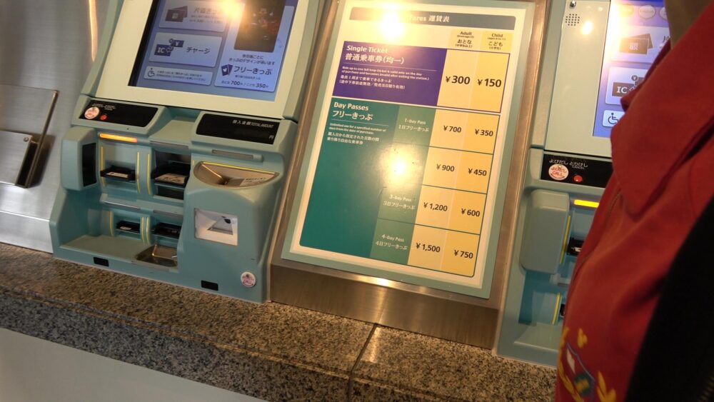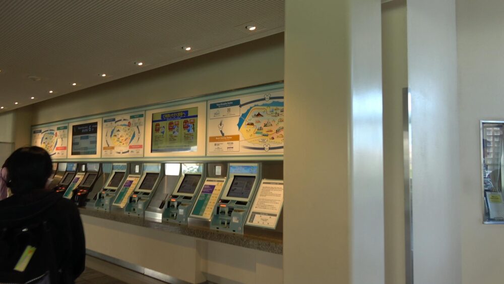 エスカレーター(階段)を上りコンコースには自動券売機があるのでこちらでディズニーリゾートラインの乗車券(フリー切符)を購入します。