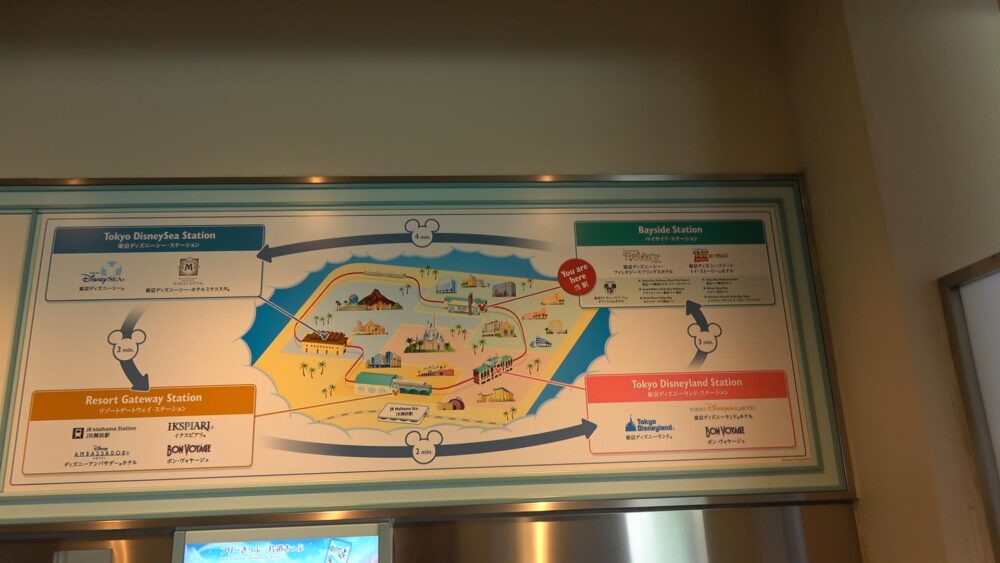ディズニーリゾートラインは、こちらの「ベイサイドステーション」を含め4つのステーションから構成(1周を約13分で周回)