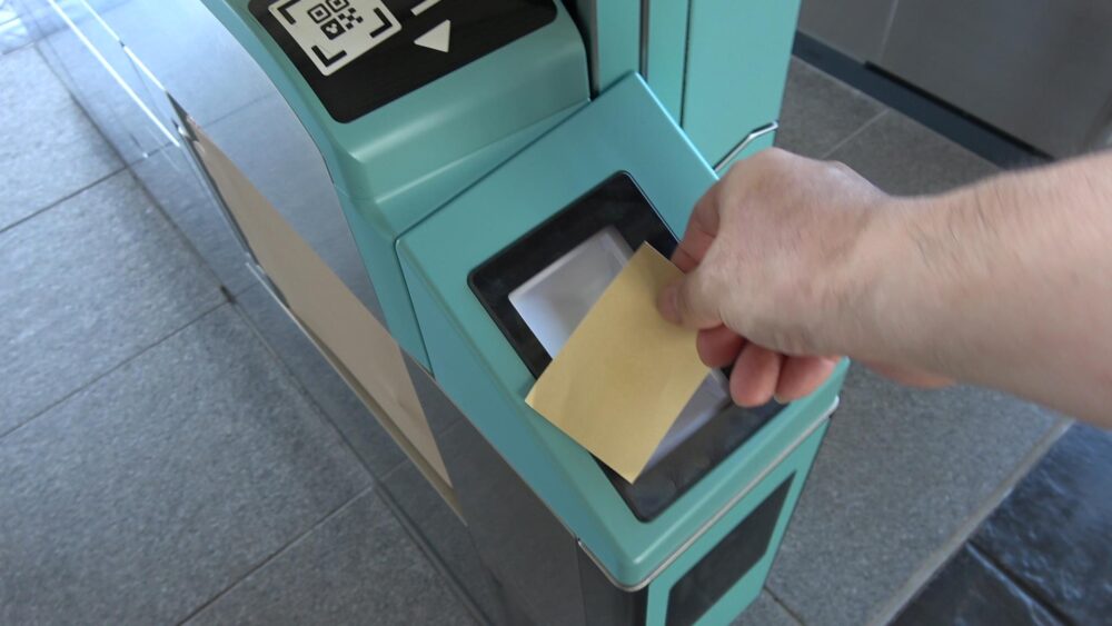 普通乗車券のQRコードを自動改札機の読み取り装置にかざします。