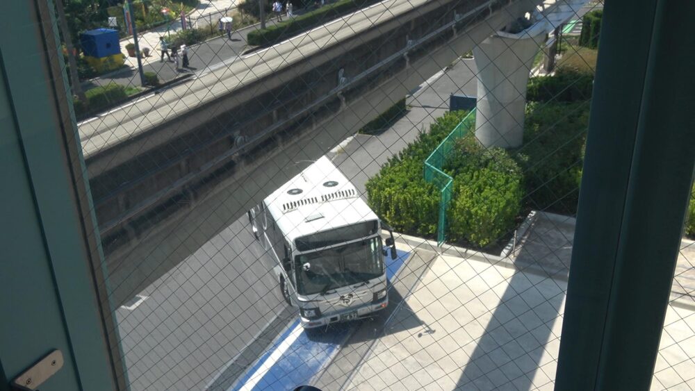 旧タイプのディズニーリゾートクルーザーではなく、現在街中で走っているようなバスを改造したタイプのバスがやってきました。
