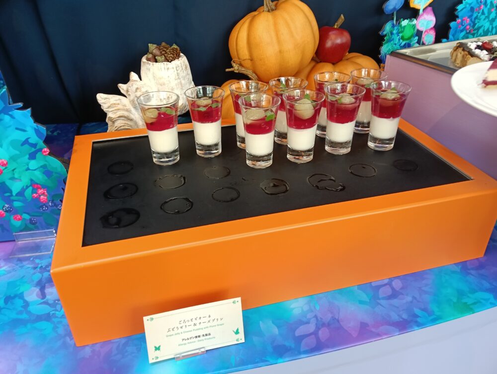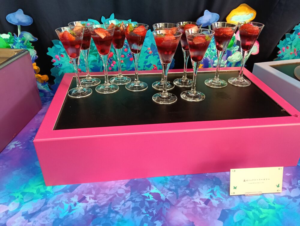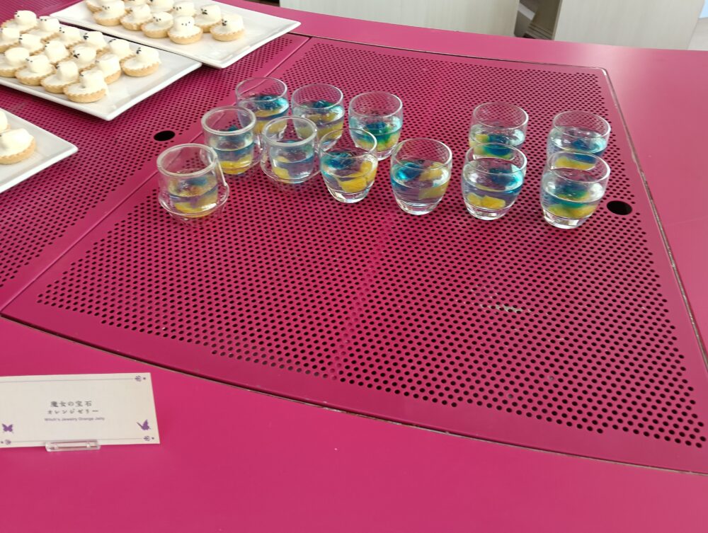透明感のある紫色のゼリーは、食べるとオレンジ味。魔女の宮殿にあるジュエリーボックスをイメージして、寒天ゼリーで宝石を表現。オレンジの爽やかな味わいをご堪能(公式HPより引用)