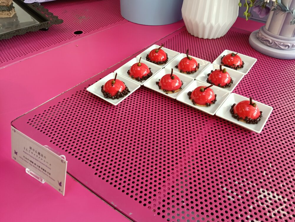 ほんのり苦みのあるキャラメルムースにシャキシャキとしたりんごが包みこまれ、魔女のいたずらで、艶々したりんごにパチパチ弾けるキャンディーがトッピング(公式HPより引用)