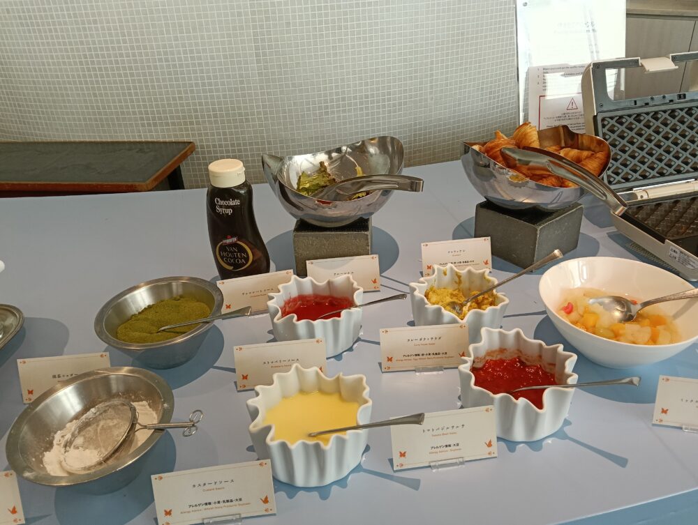 焼いたクロッフルに合わせてお好みのコンディメントを一緒に
