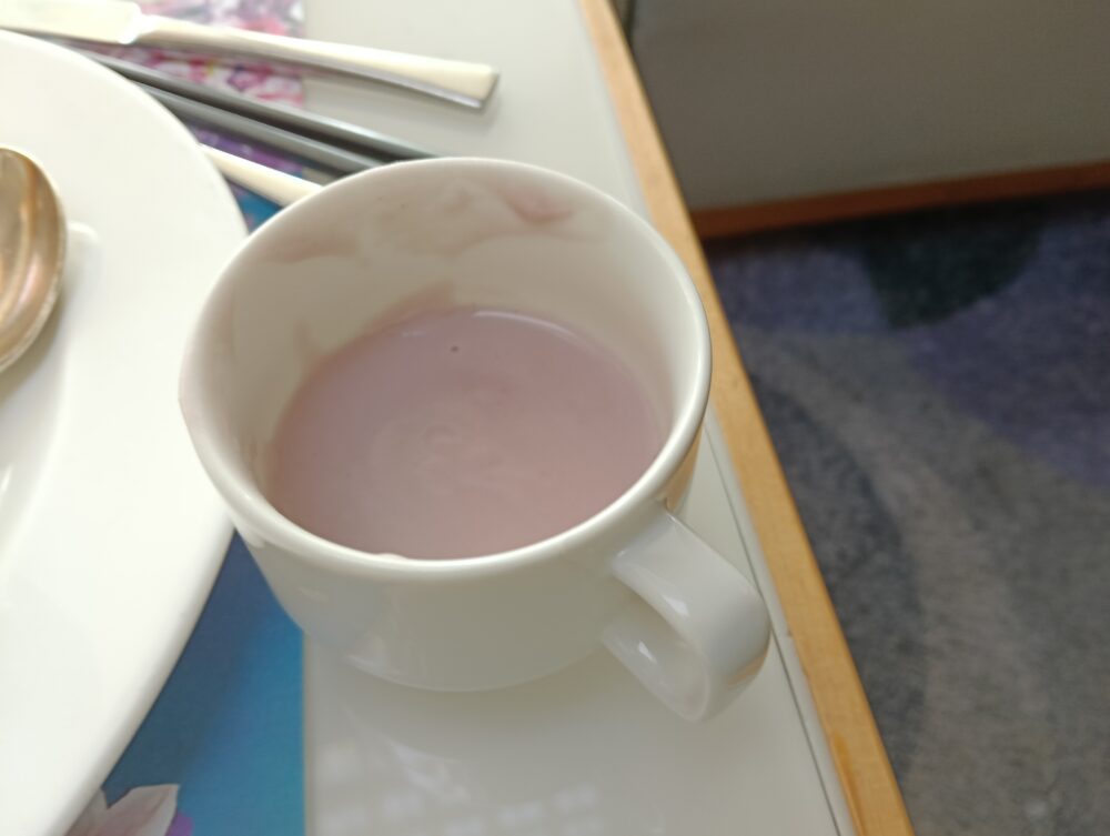 (紫芋の香りが口の中に広がりほんのり甘くてクリーミーなポタージュ)