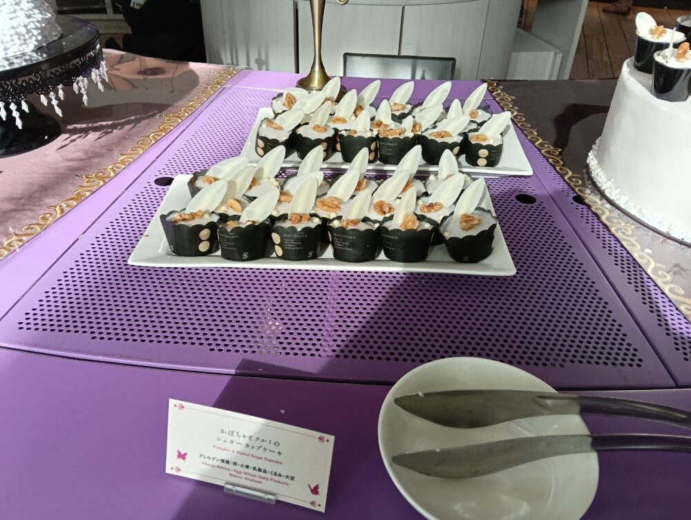 クルミとかぼちゃペーストを入れて焼き上げた秋の味覚を楽しむカップケーキ