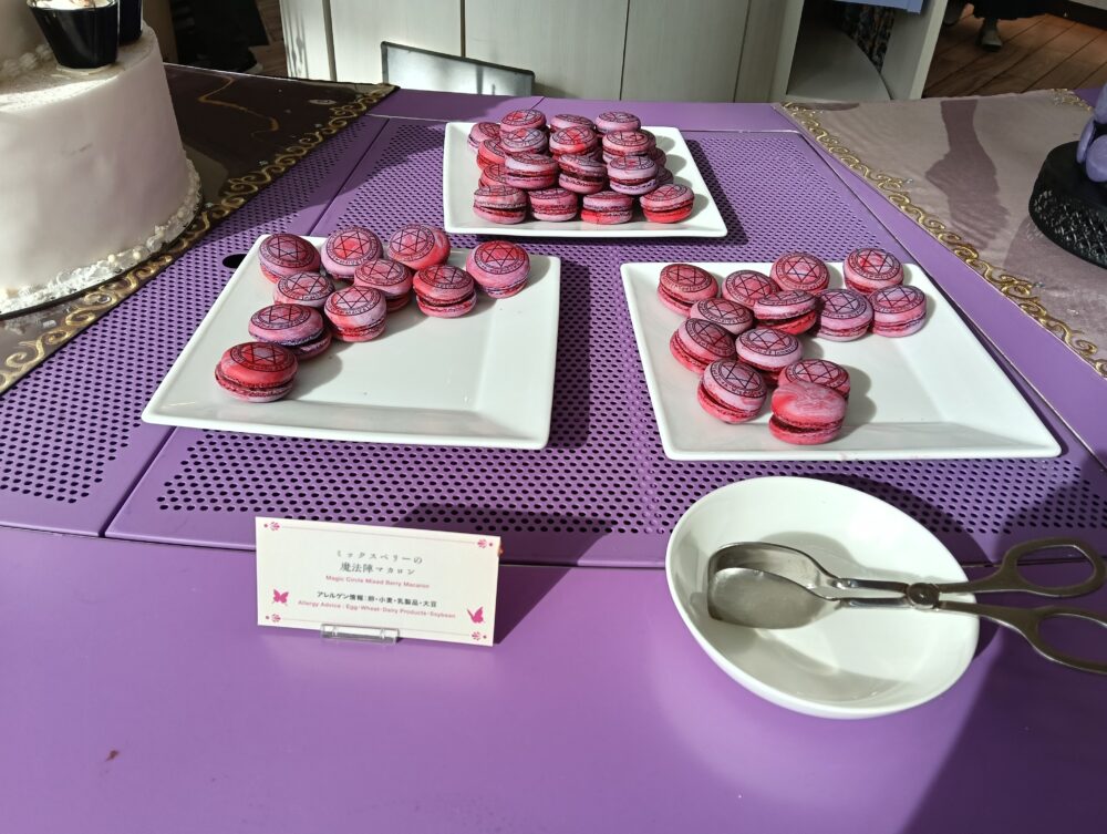 魔女の魔法で紫と赤のマーブルカラーに染まったマカロン