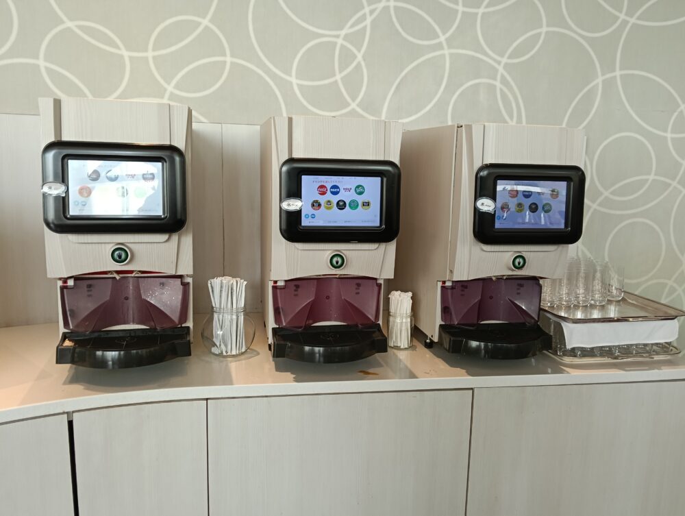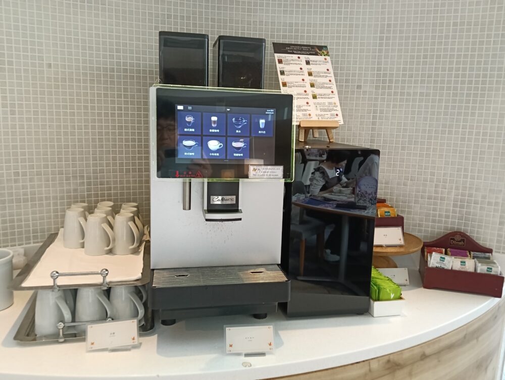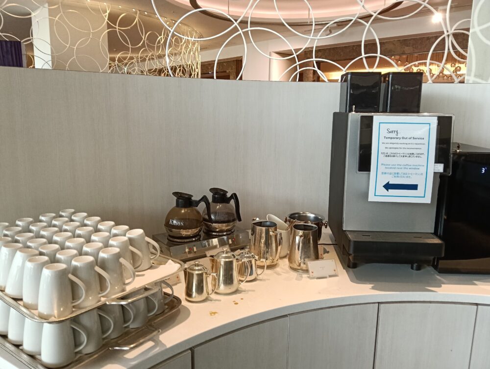 先程とは別な場所にコーヒーマシンによるコーヒーの提供があり、さらにティーパックによる紅茶などの提供もあり