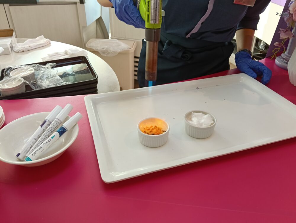 最後に3色(ブルー、ピンク、パープル)パウダーを1つ選び振りかけてもらいます。