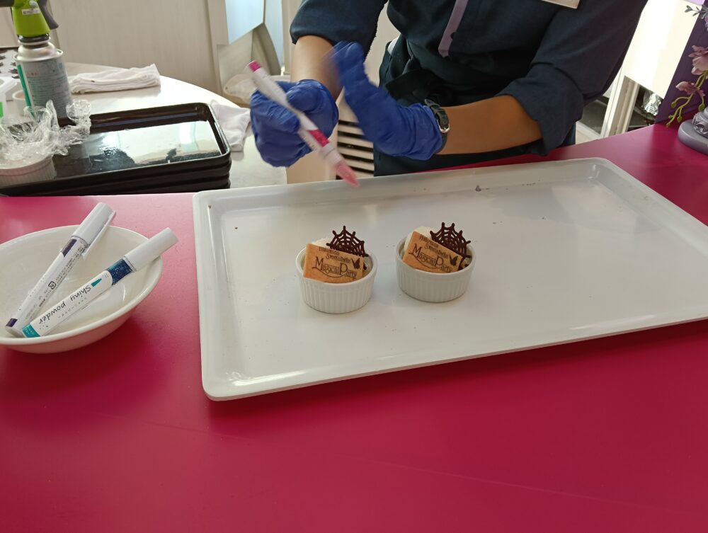 飾り付け(蜘蛛の巣のチョコレート&クッキー)をして完成