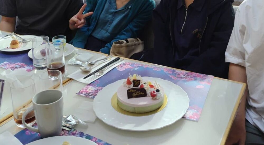 デザートビュッフェ終了近くに、予約をしておいたバースデーケーキをテーブルまでスタッフの方に持って来て頂き記念に家族全員の写真撮影をして頂きました。