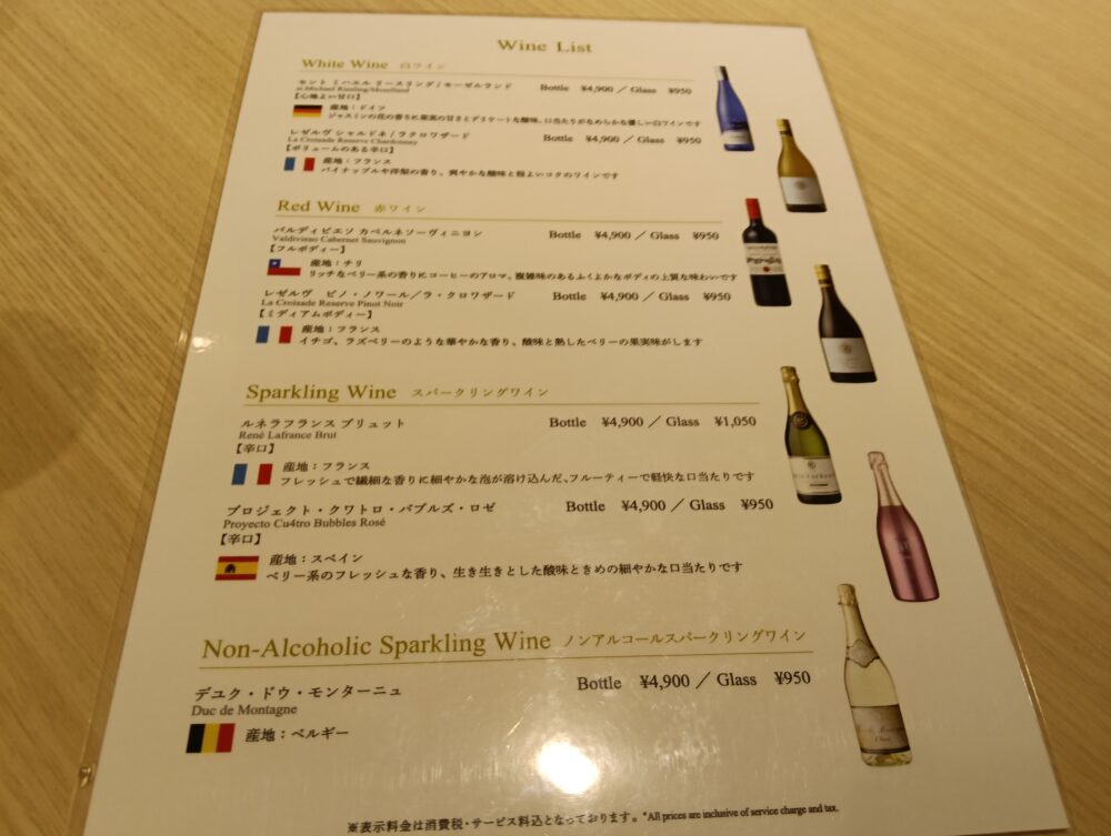ワインを注文した場合はこちらのワインリストから