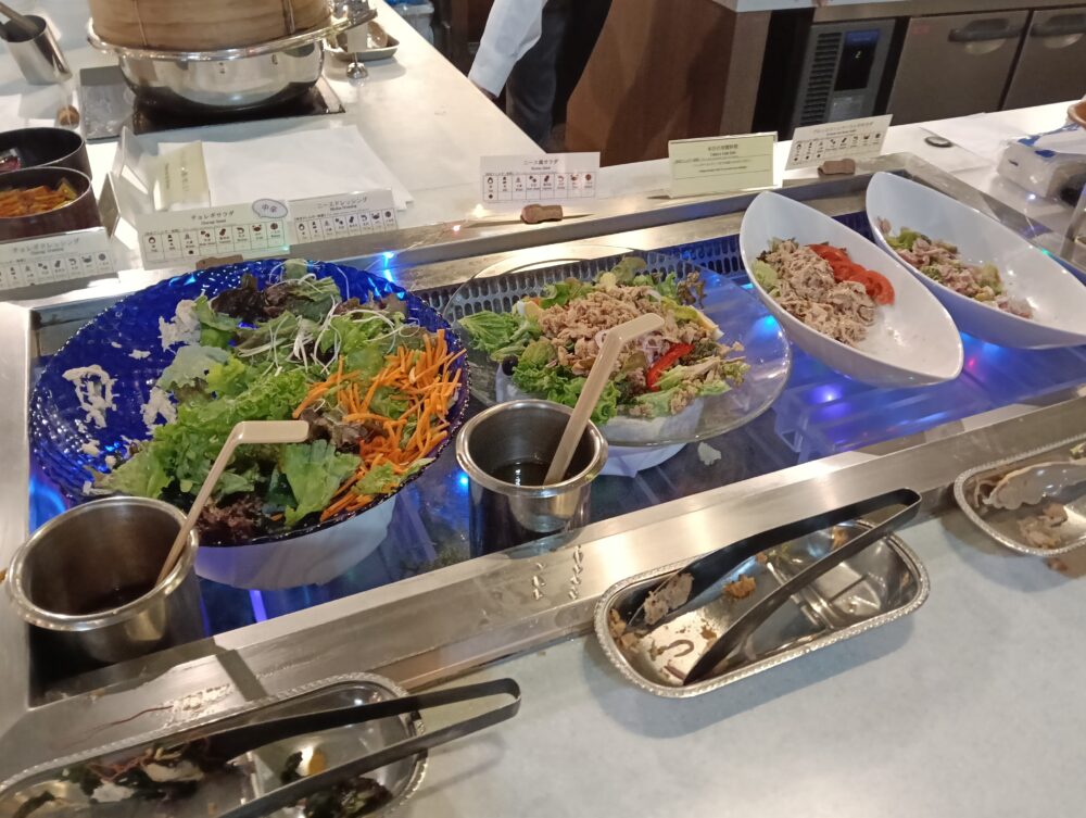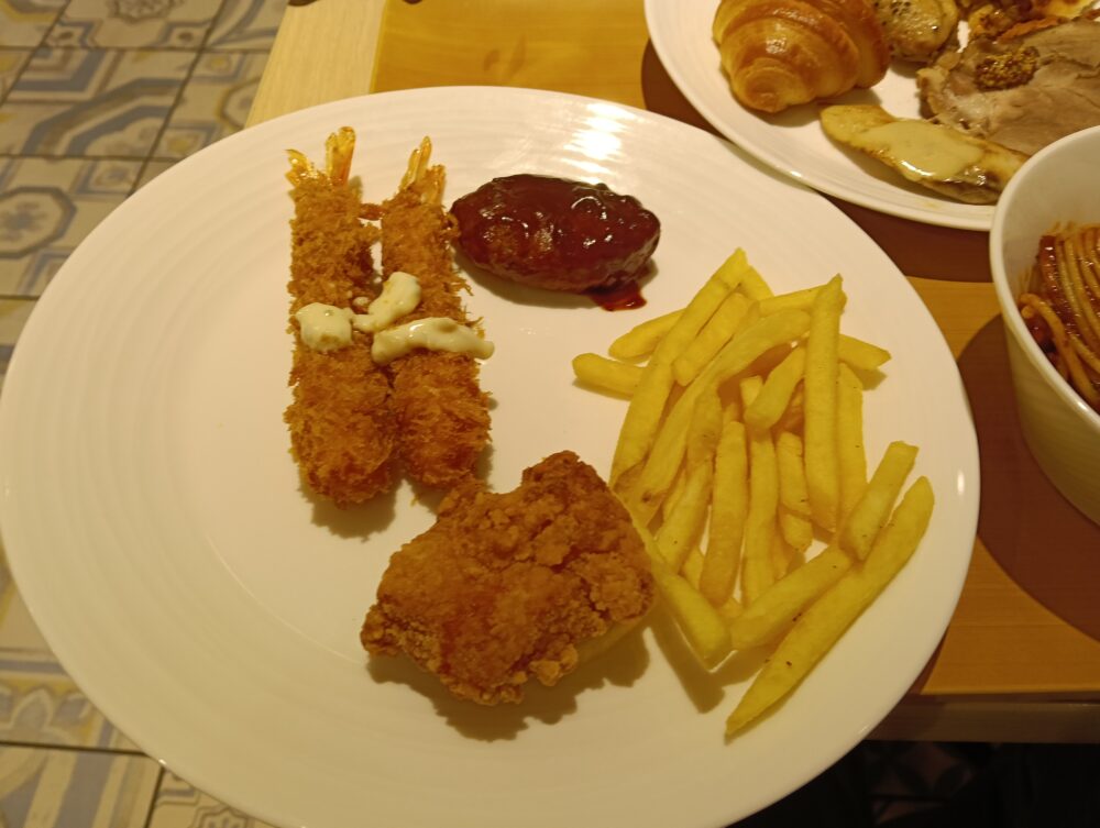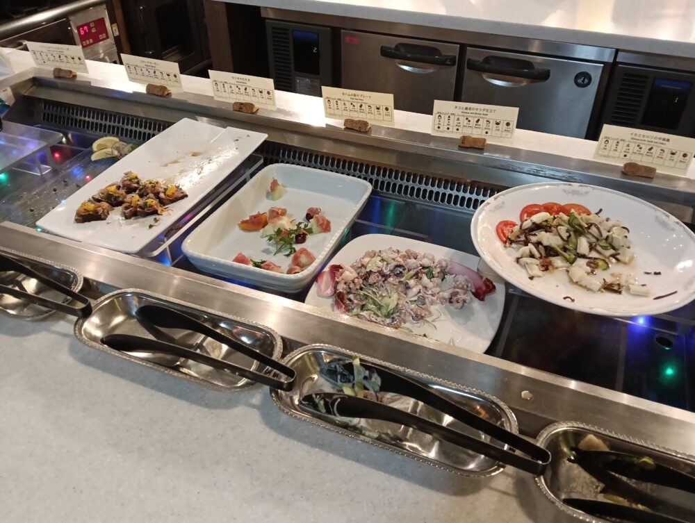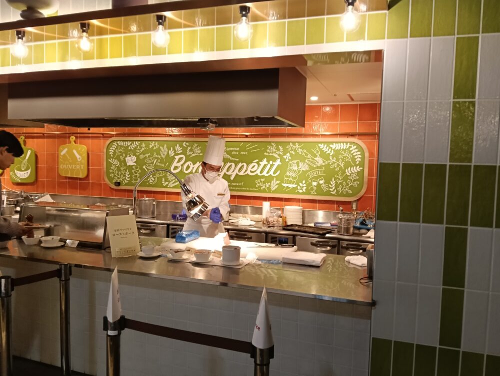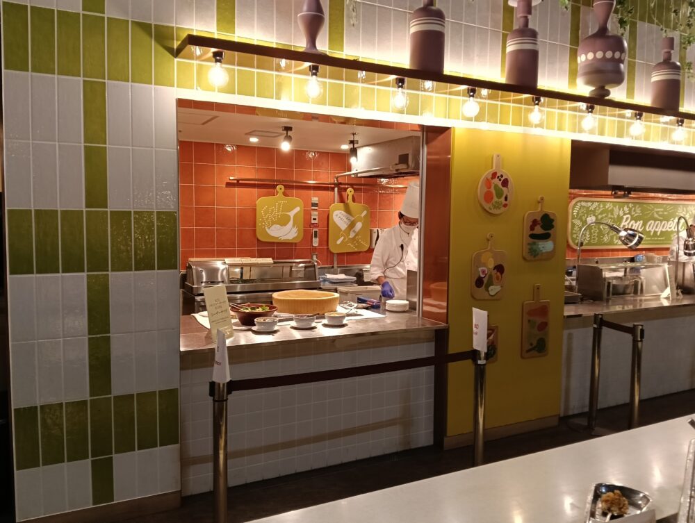 実際にディナービュッフェを利用してみると値段が安価な分、料理の品数が少ないのではないかと思っておりましたが実際に訪問してみるとパフォーマンスキッチンが(テーマ3つ)あり、それぞれにシェフの方が出来立ての料理を用意してくださり提供してくれることから出来立てを食べる事ができます。その他のビュッフェ料理についても洋食、中華、日本食、お子様コーナーとカテゴリーが多くとても満足できるディナービュッフェではないかと思いました。