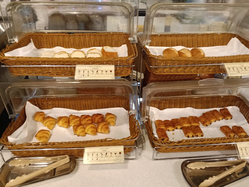 ブレッドクルトン(左上段)、クーペ(右上段)、クロワッサン(左下段)、パン・オ・ショコラ(右下段)