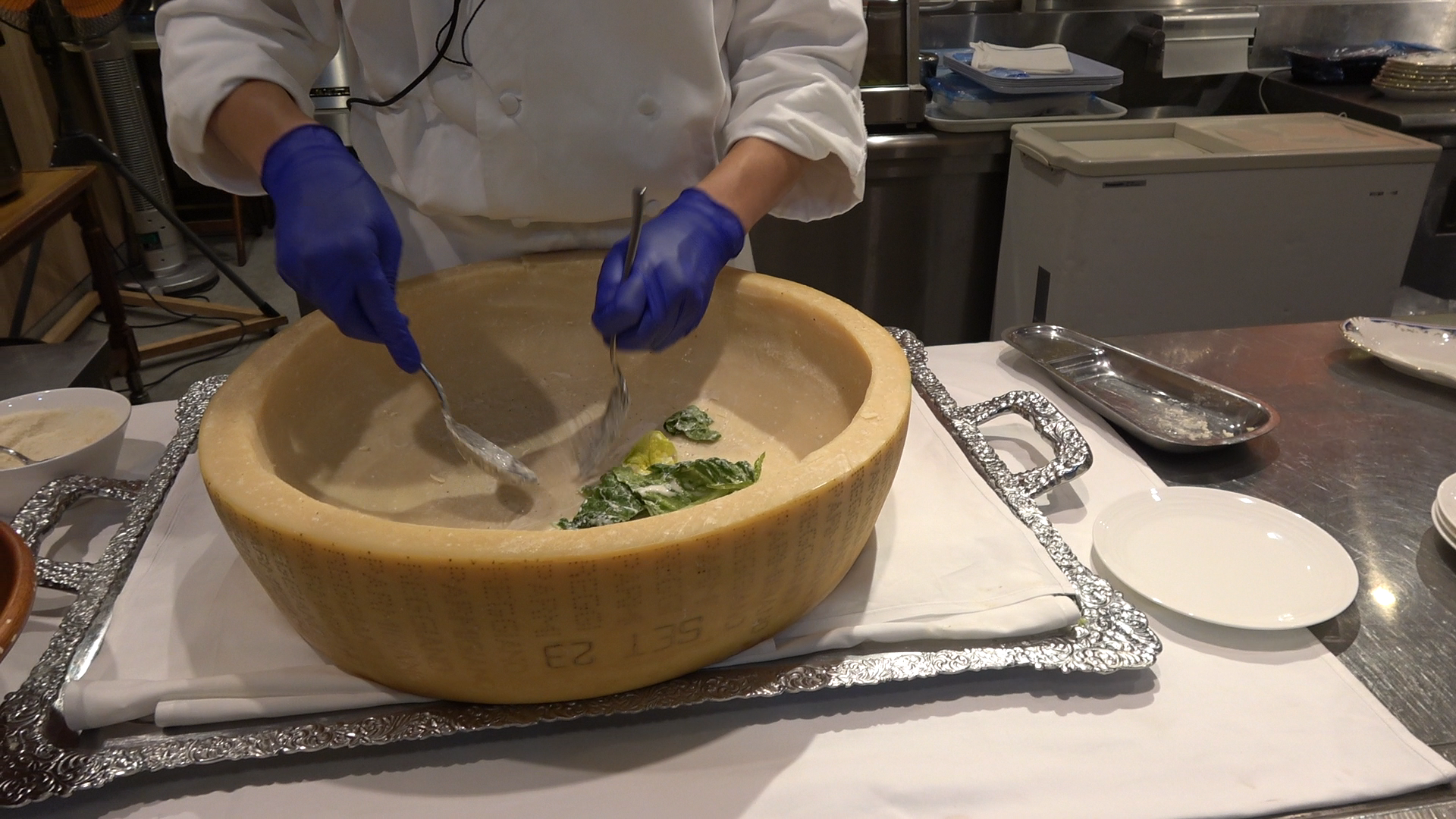 注文後、シェフの方がパルミジャーノでシーザーサラダを作ってくださいます。