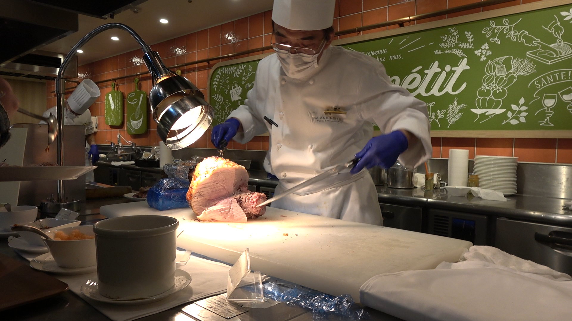 注文ごとにシェフの方がローストポークをカットしてくださいます。