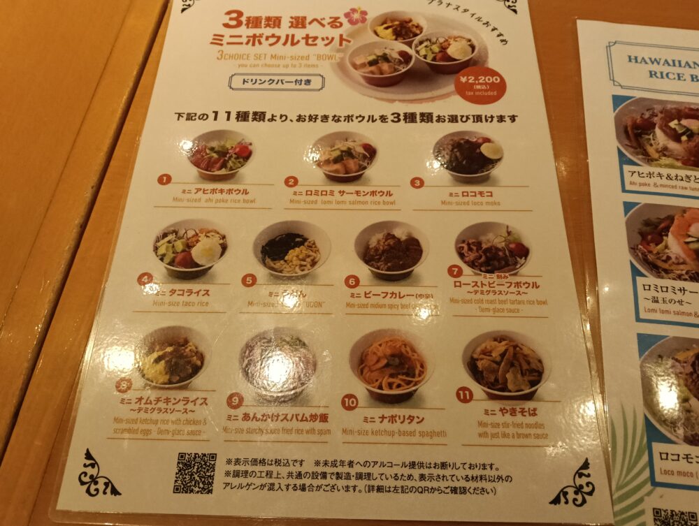 3種類選べるミニボウルセット(ドリンクバー付き)2200円(税込み)