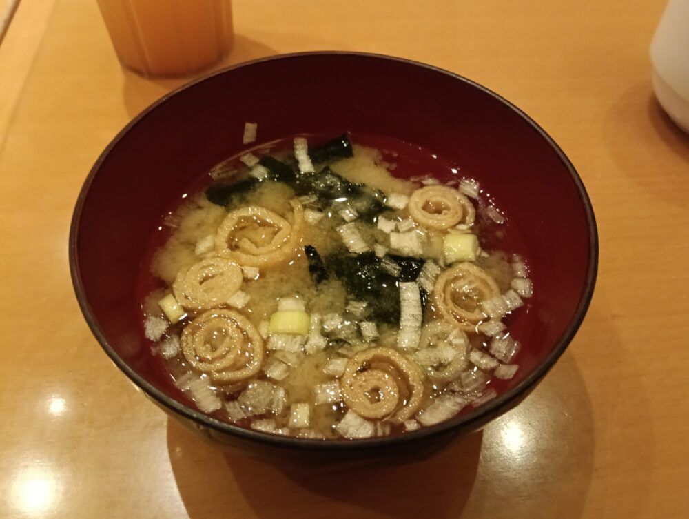 味噌汁(具材:ネギ、ワカメ、クルクル麩)