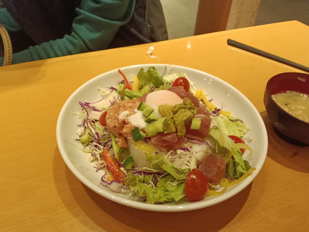 見た目からしてワクワク感満載の「3種類選べるミニボウルセット」。トレーに並んだ小ぶりのボウルたちは、まるで“大人のお子様ランチ”のようで、運ばれてきた瞬間からテンションが上がりました。どれもミニサイズなのでペロリと食べられますが、3種類あることで満足度は想像以上に。少しずついろいろ食べたい人にはお薦めのミニボウルセットです。
